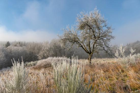 Wallpaper Frosty ground and trees at sunrise