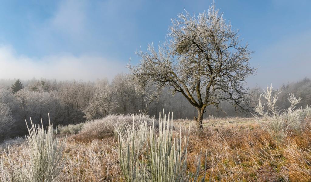 Wallpaper Frosty ground and trees at sunrise
