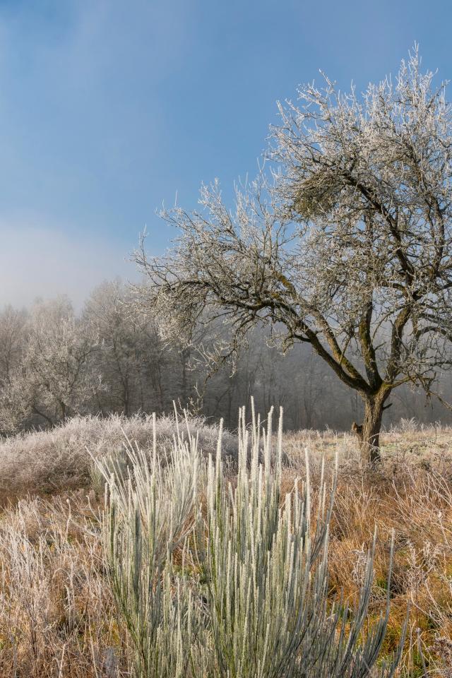 Wallpaper Beautiful snow covered trees against the blue sky at sunrise