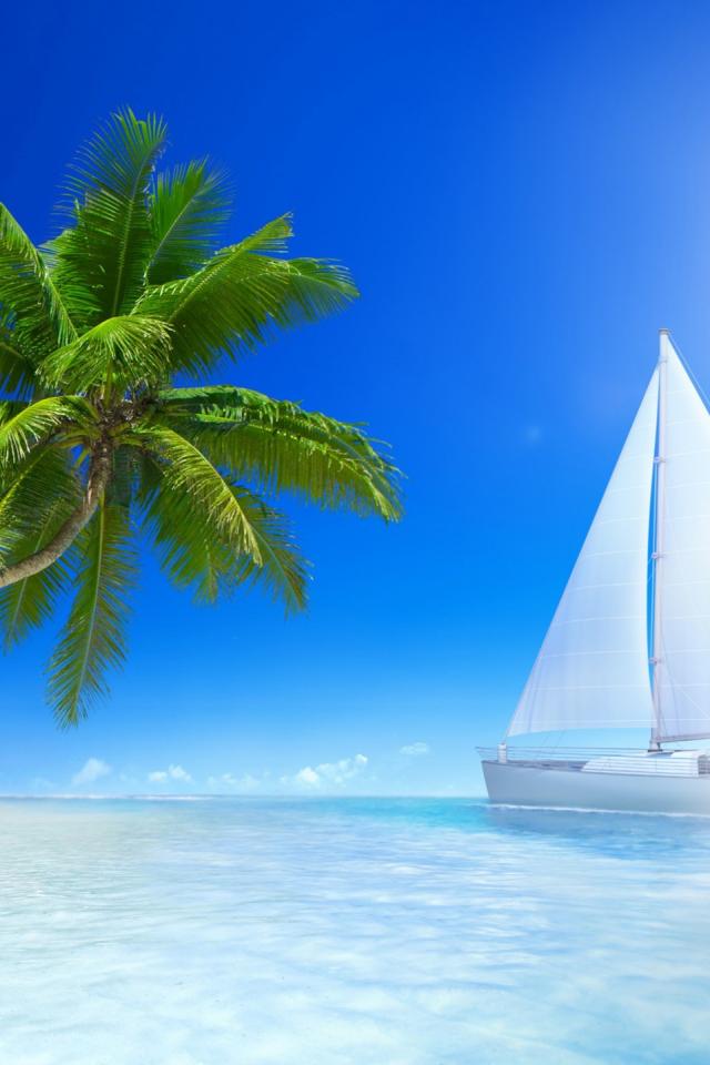 Wallpaper White sailboats in the sun at the beach