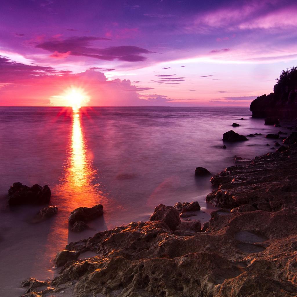 Wallpaper Stone beach at sunset
