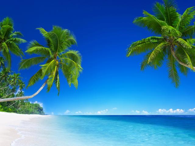 Wallpaper Green palm trees against the blue horizon