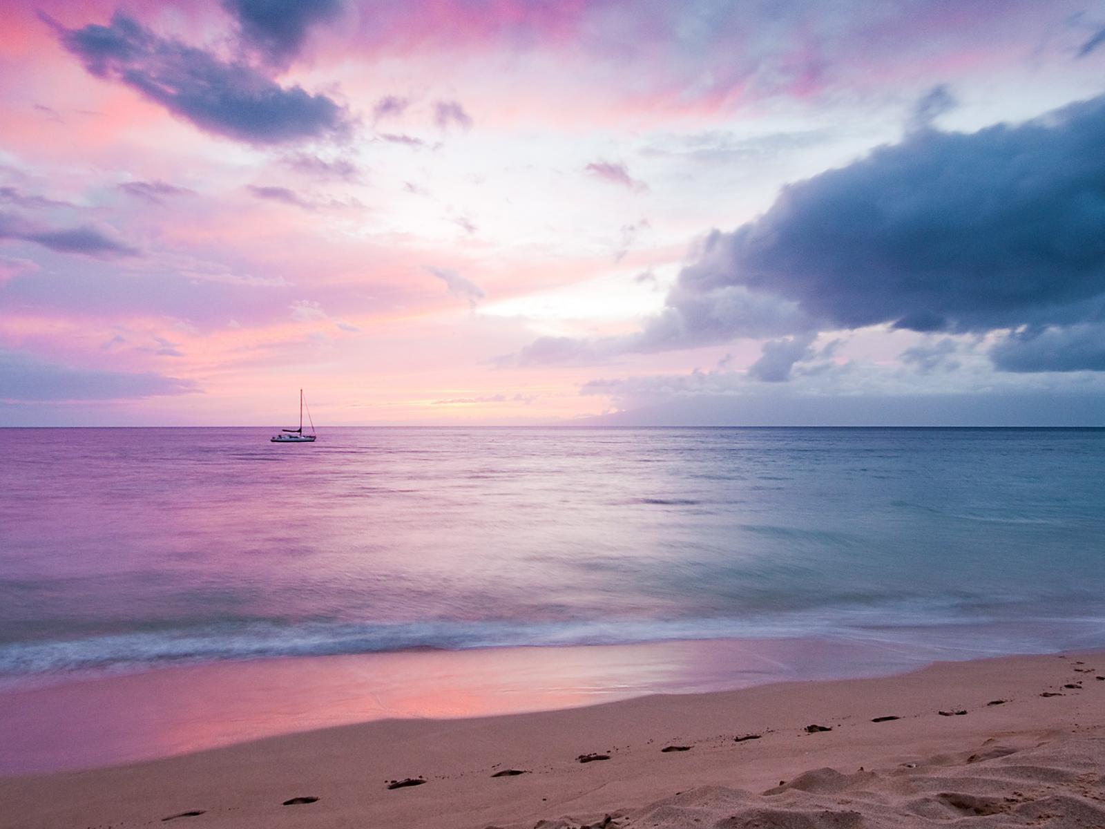 Wallpaper Lonely boat on the background of the dawn horizon