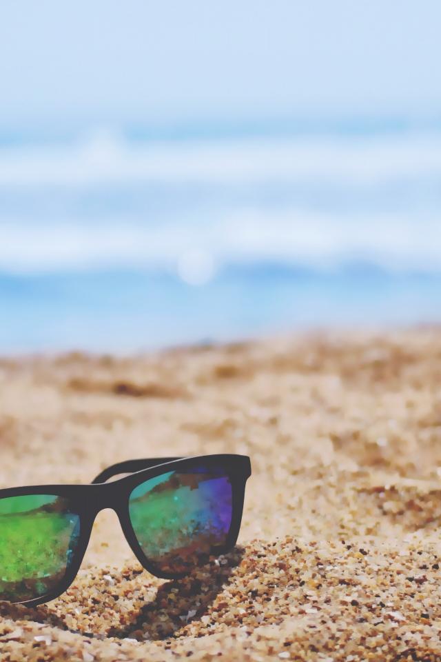Wallpaper Sunglasses lie on the yellow sand near the sea