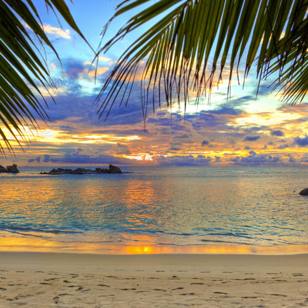 Wallpaper Beautiful sunset in the sky on a tropical beach