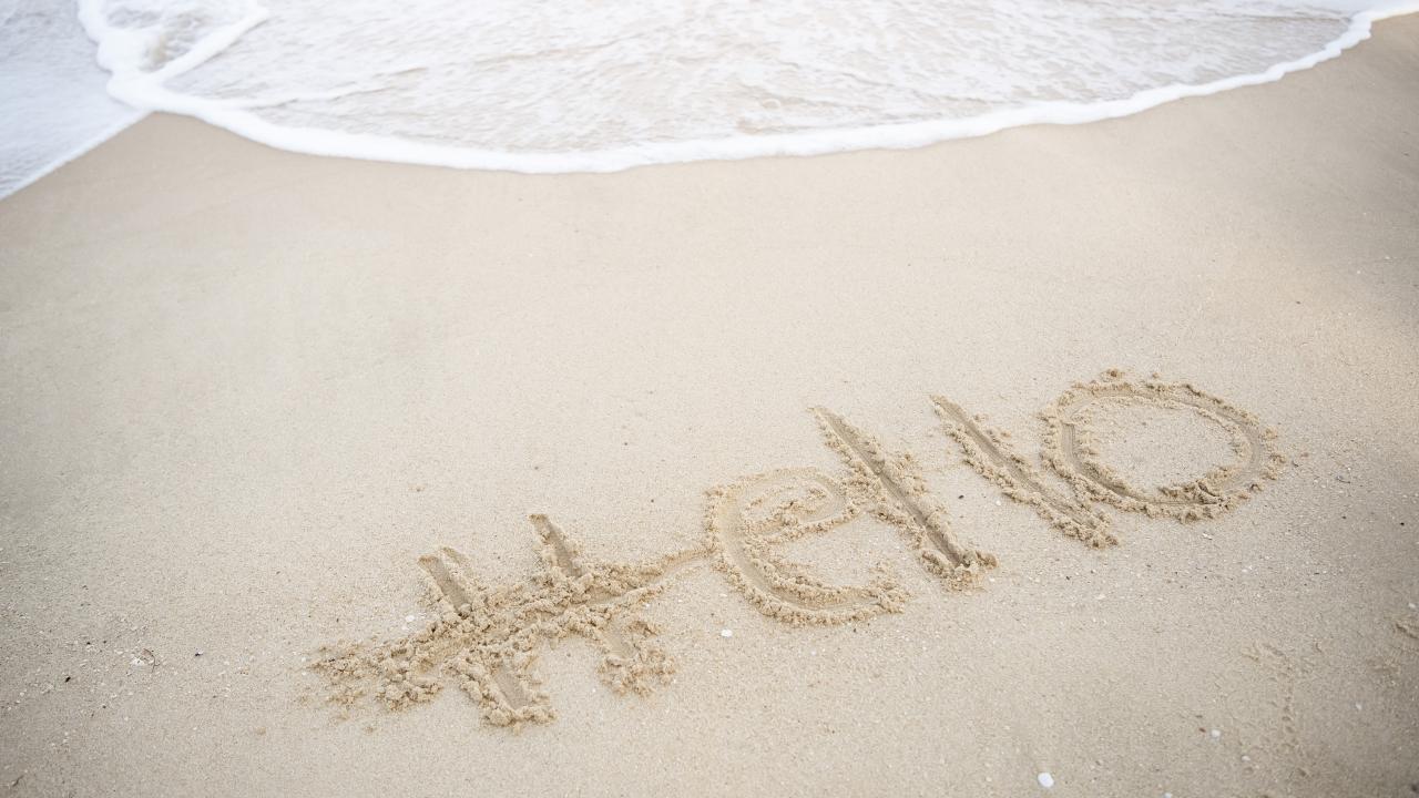 Wallpaper Hello lettering on wet sand by the sea in summer