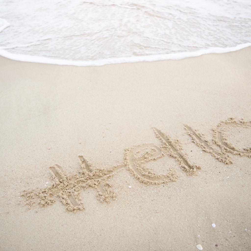 Wallpaper Hello lettering on wet sand by the sea in summer