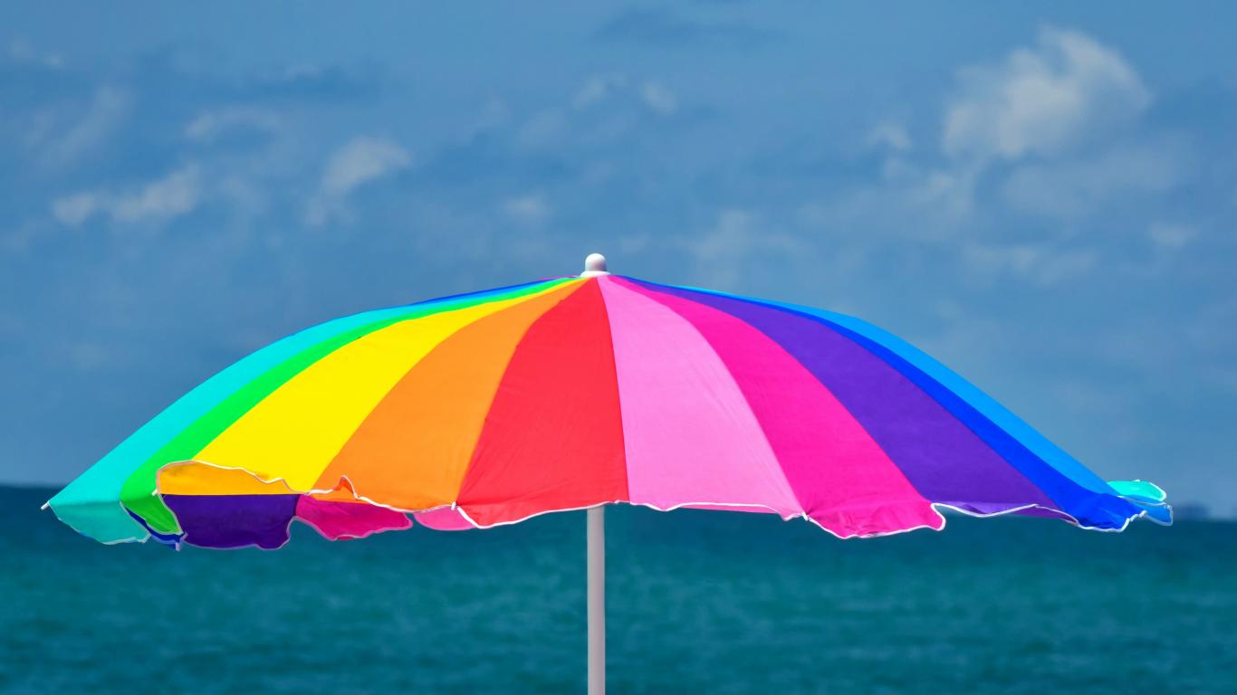 Wallpaper Large multi-colored beach umbrella on a background of the sea