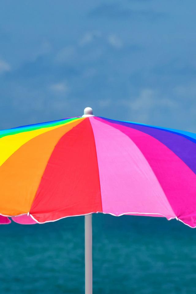Wallpaper Large multi-colored beach umbrella on a background of the sea