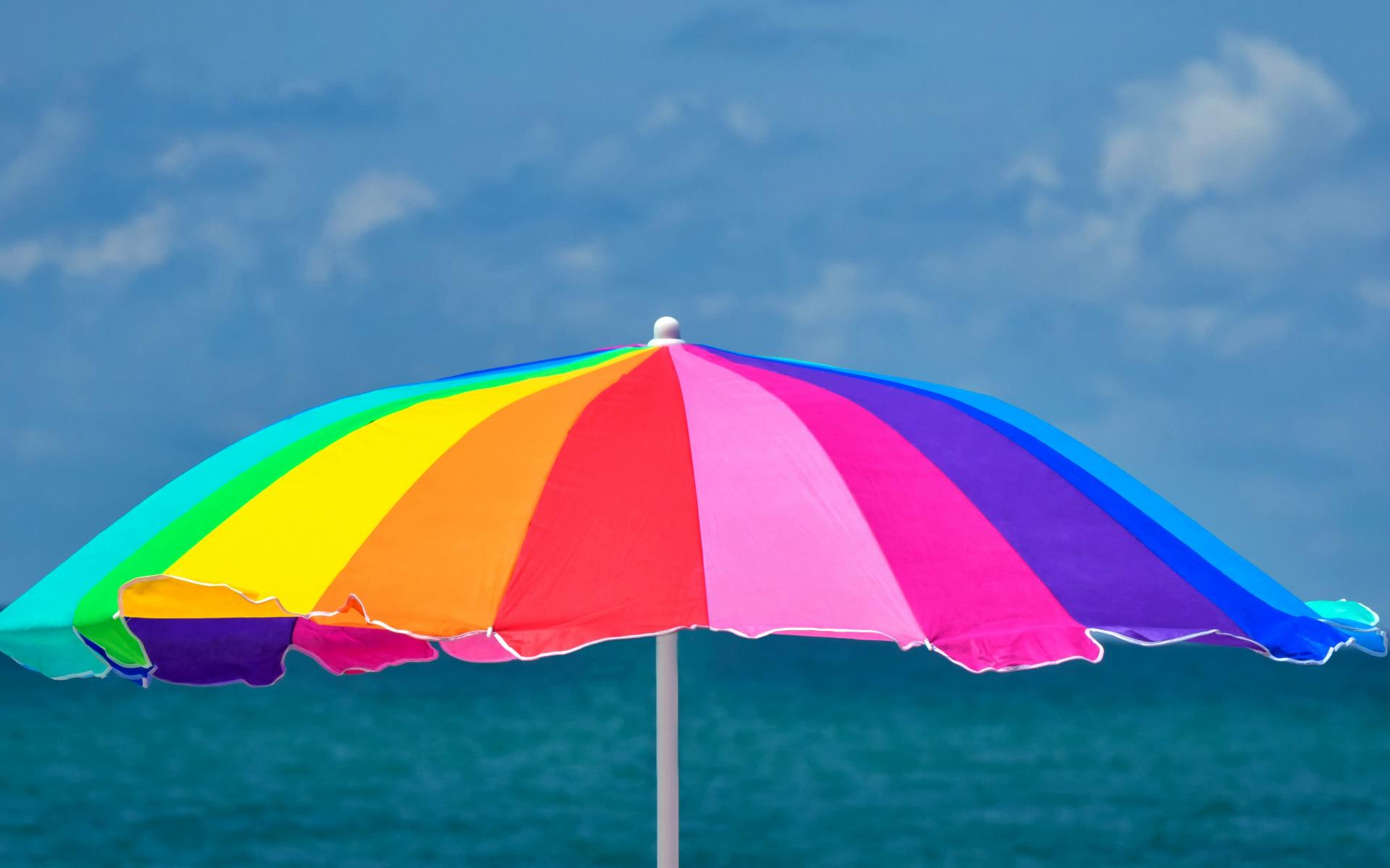 Wallpaper Large multi-colored beach umbrella on a background of the sea