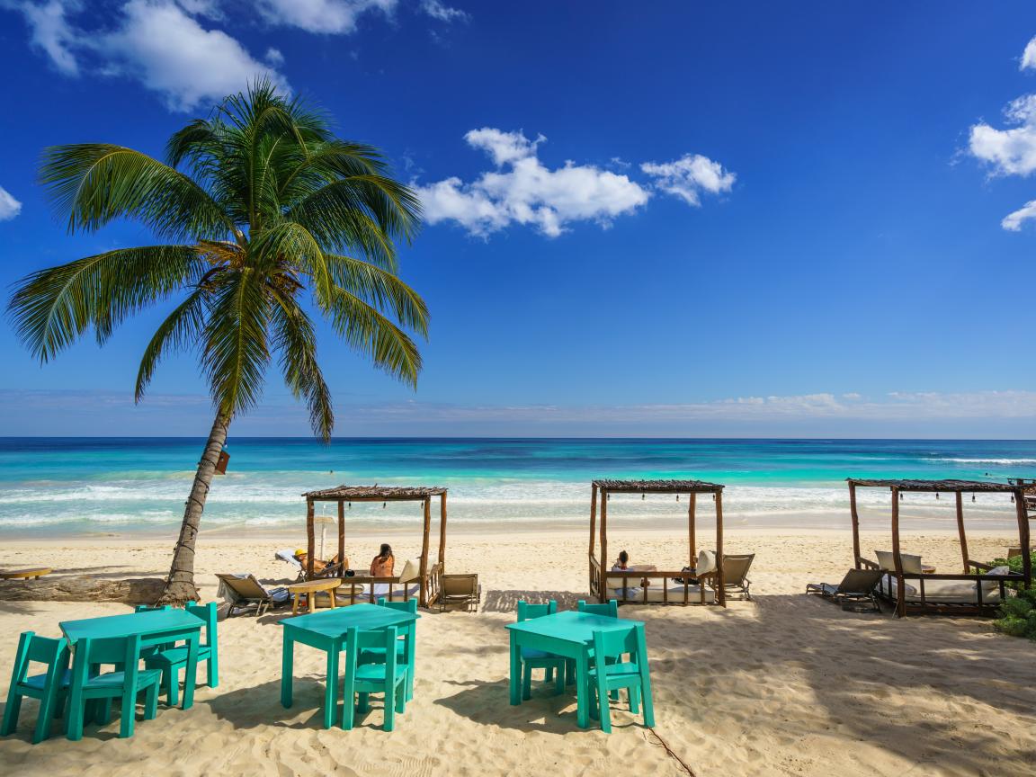 Wallpaper Beautiful tropical beach with hot sand by the ocean