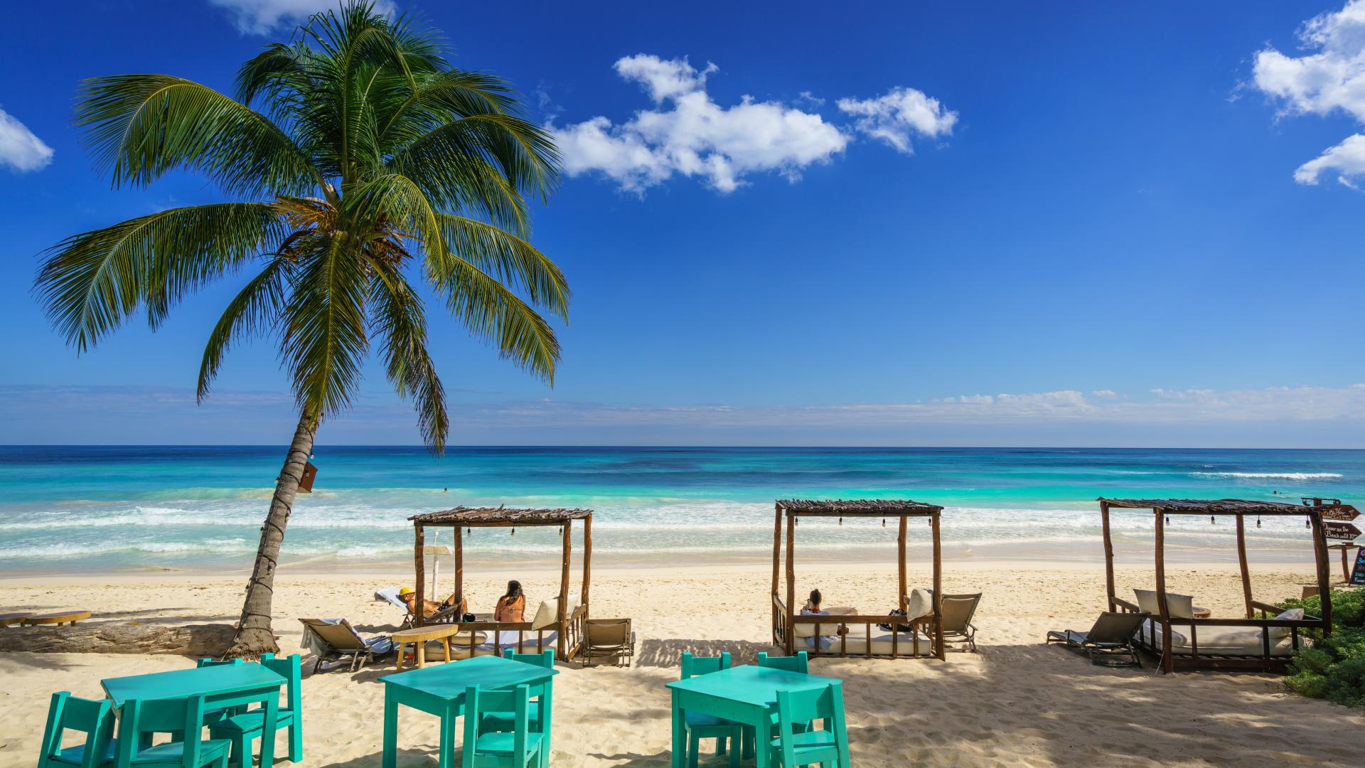 Wallpaper Beautiful tropical beach with hot sand by the ocean