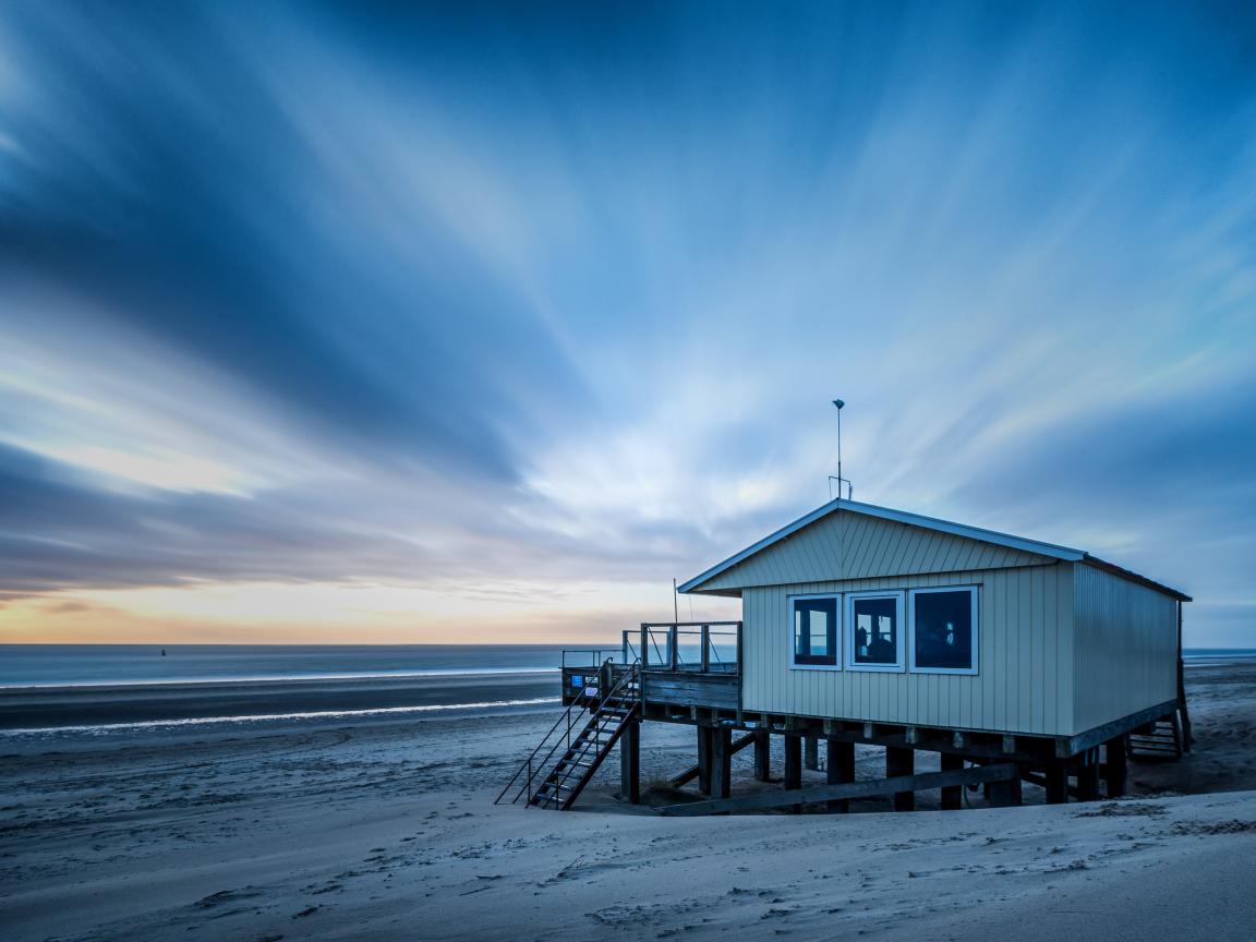 Wallpaper The lifeguard house stands on the beach under a beautiful sky