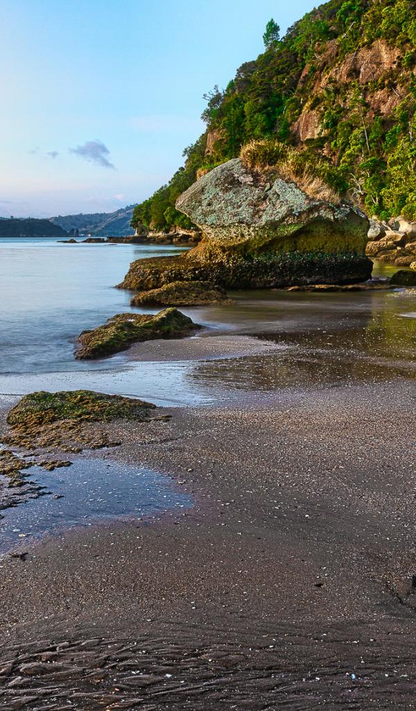 Wallpaper Wet sand and large boulders by the bay