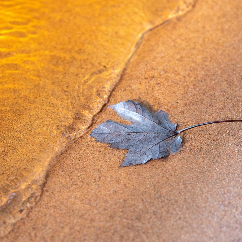 Wallpaper The leaf lies on the sand by the water