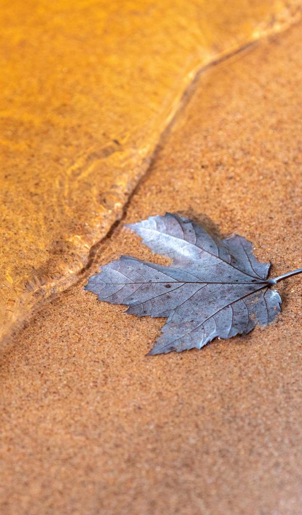 Wallpaper The leaf lies on the sand by the water