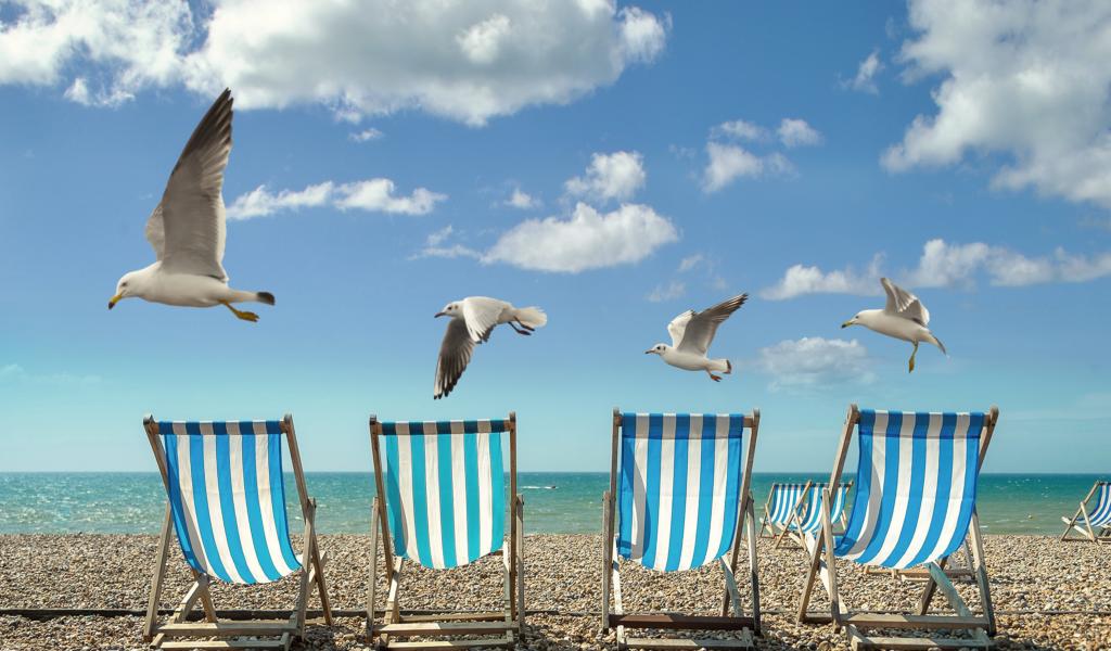 Wallpaper Sun loungers stand on yellow sand by the sea