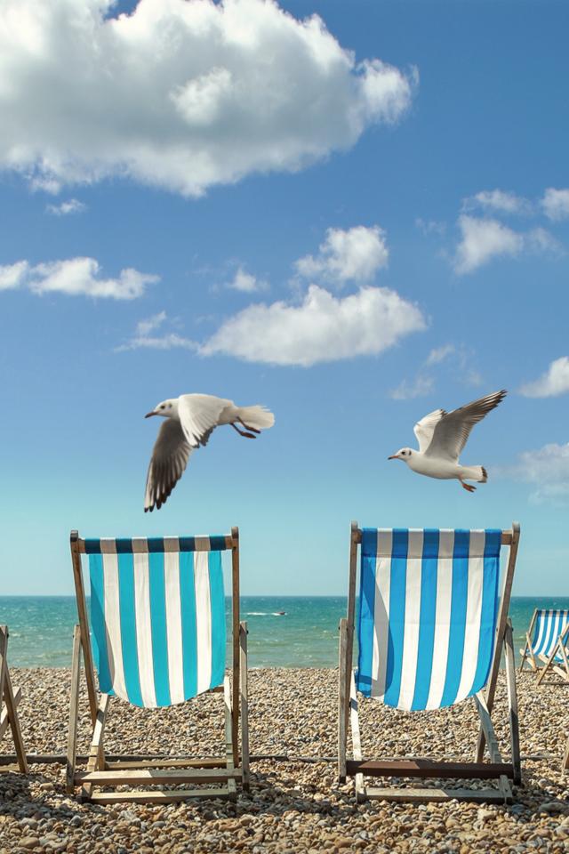 Wallpaper Sun loungers stand on yellow sand by the sea