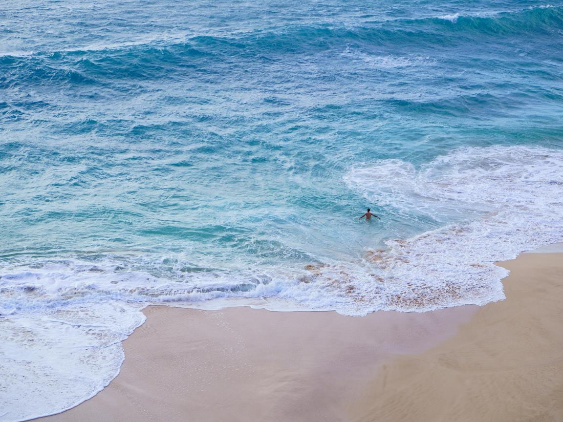 Wallpaper Clean beach with white sea waves on the sand