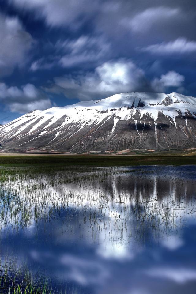 Wallpaper White clouds reflected in the water of a mountain lake
