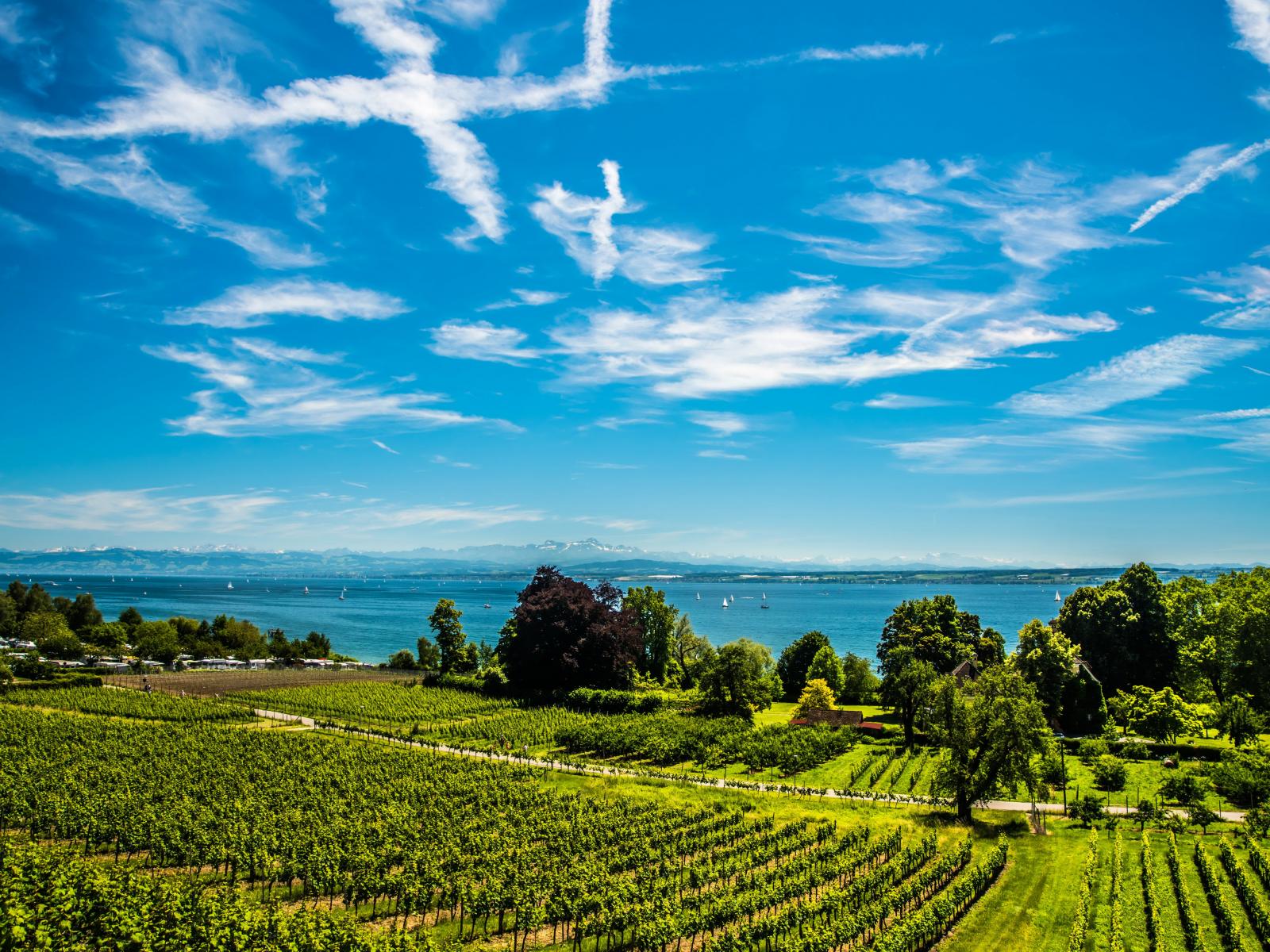 Wallpaper Beautiful white clouds in the sky above the field and the lake