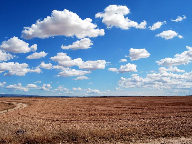 Wallpaper White fluffy clouds in the blue sky over the field in autumn