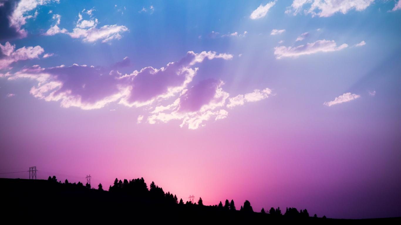 Wallpaper Beautiful lilac sky with bright rays of the sun