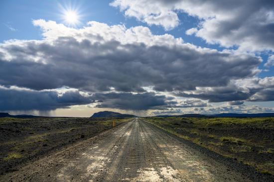 Wallpaper Long road under a blue sunny sky with white clouds in summer