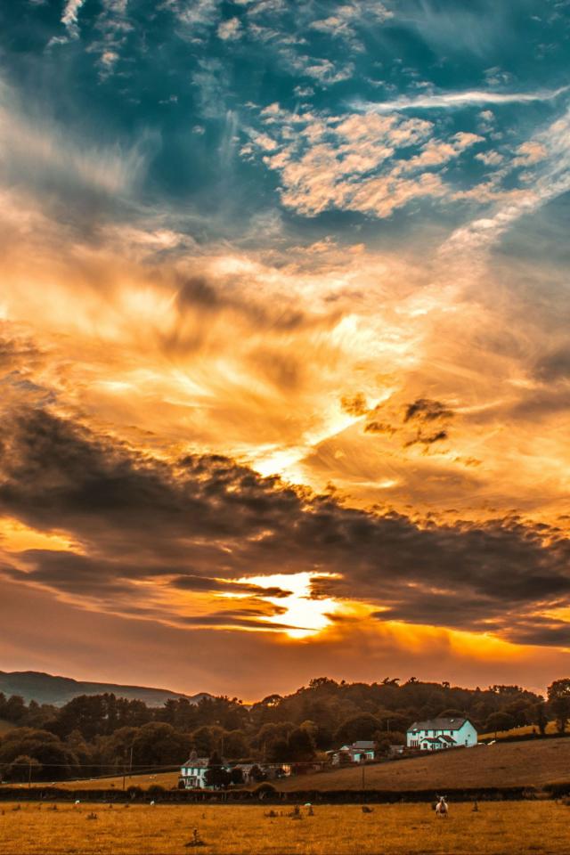 Wallpaper Beautiful sky with clouds at sunrise over a farm