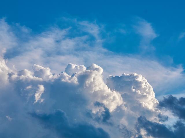 Wallpaper Thick white clouds in the blue sky in the sun