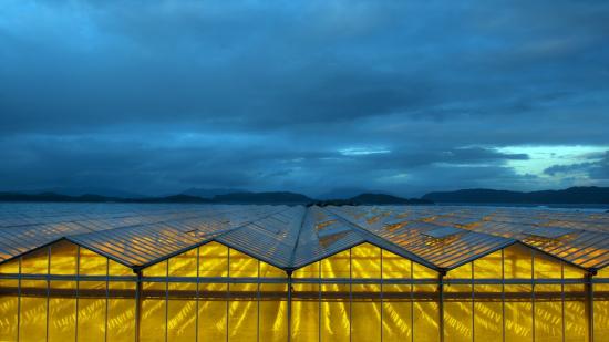 Wallpaper Yellow light in glass greenhouses