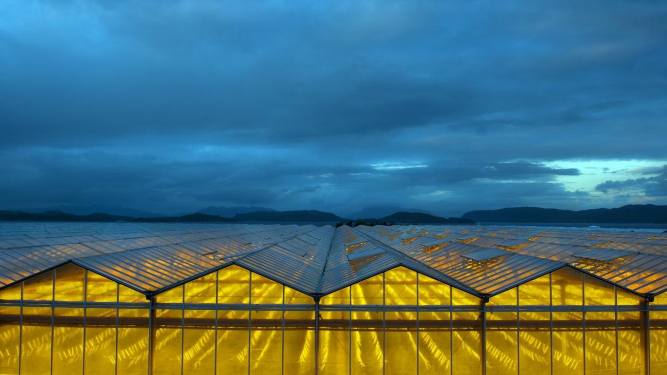 Wallpaper Yellow light in glass greenhouses