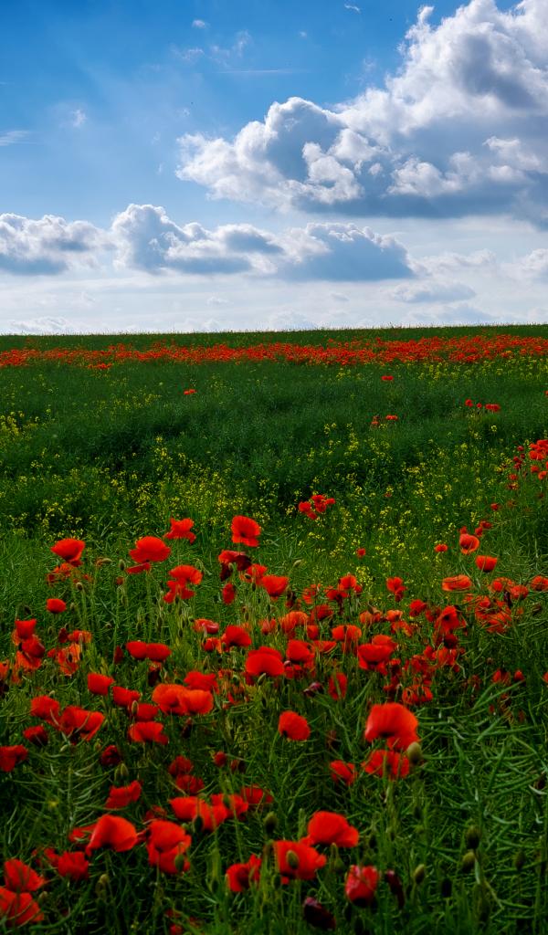 Wallpaper Field of beautiful red poppies under the blue sky in summer
