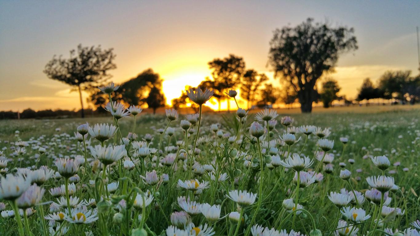 Wallpaper Field of white daisy flowers on a sunset background