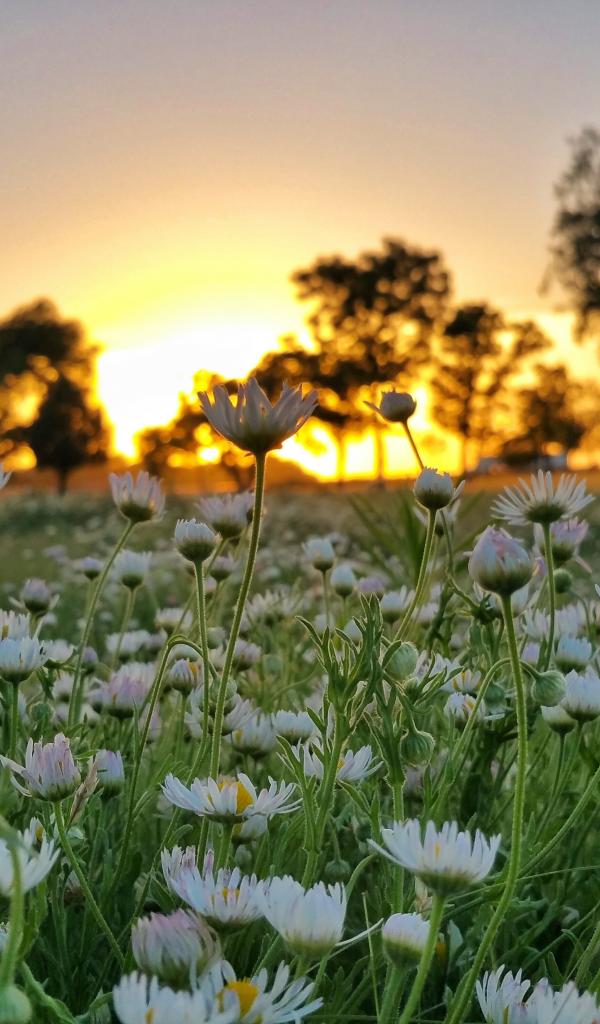Wallpaper Field of white daisy flowers on a sunset background