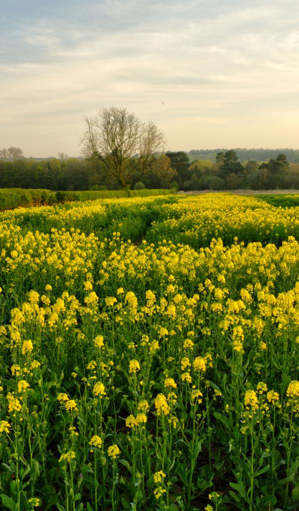 Wallpaper Yellow rapeseed field in the sun under the blue sky