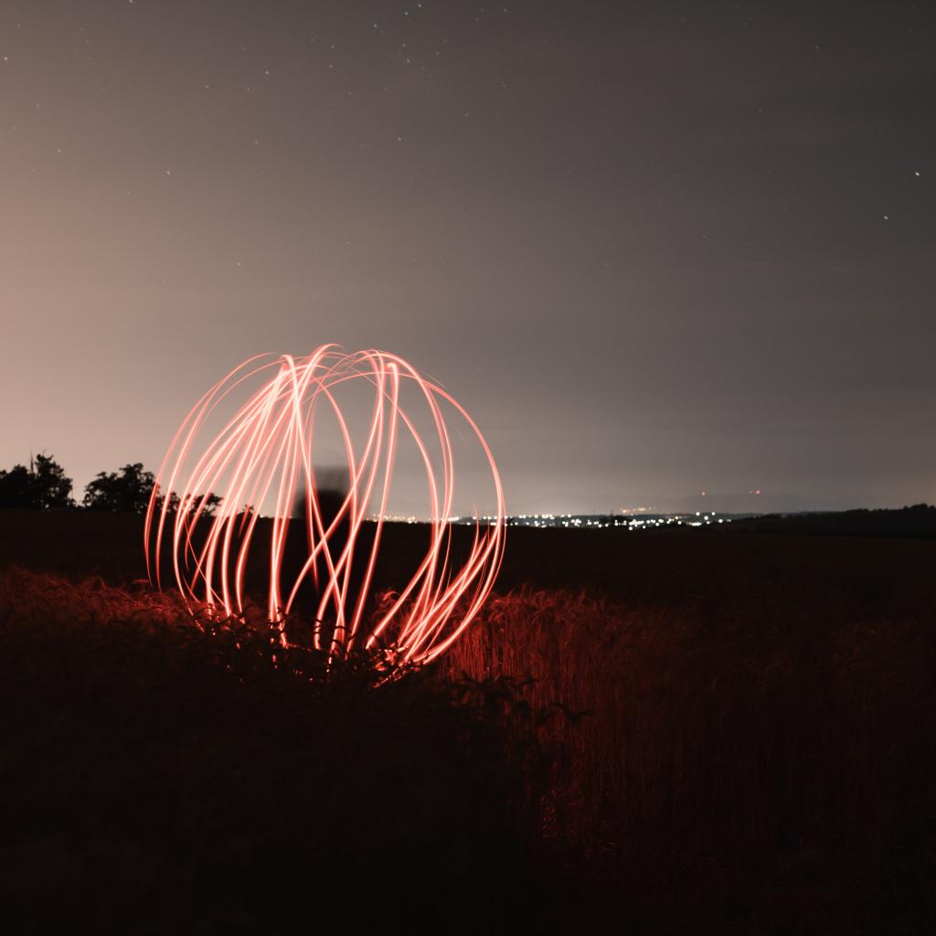 Wallpaper Ball of fire in the field at night