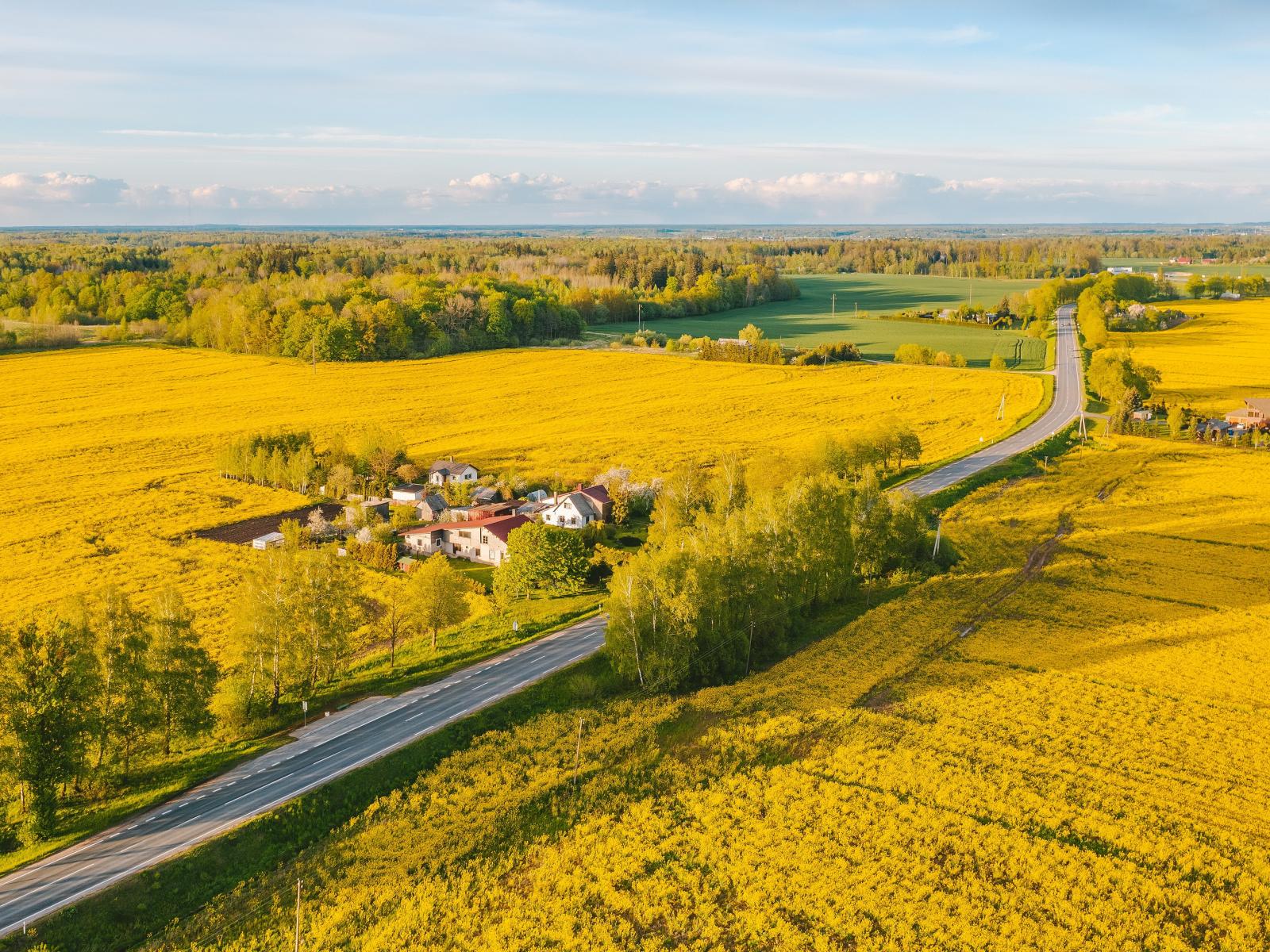 Wallpaper Yellow rapeseed fields, top view