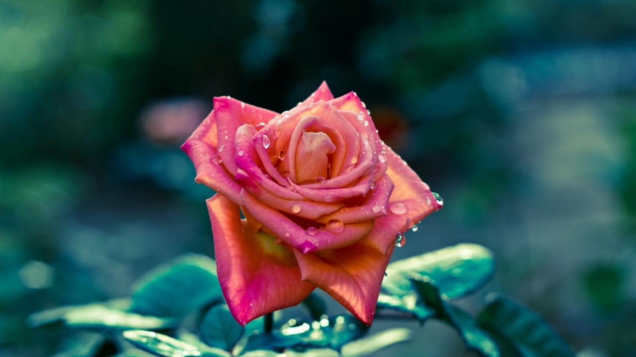 Wallpaper Beautiful pink rose in drops of dew