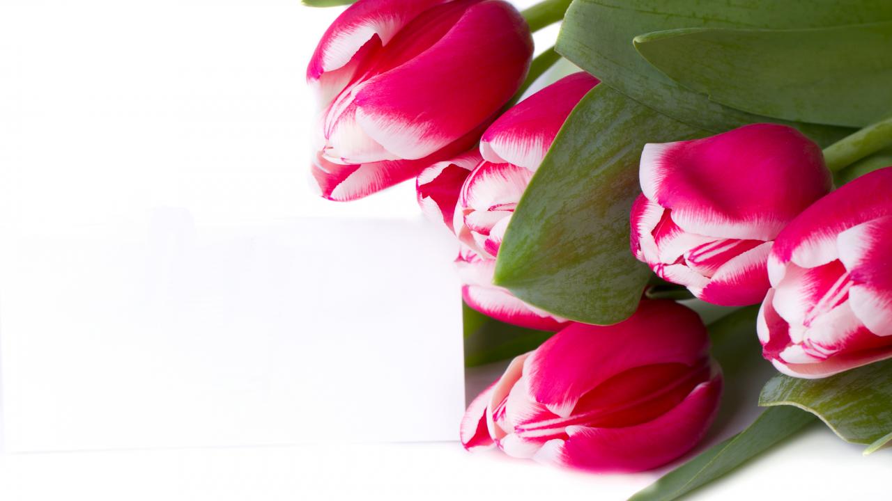 Wallpaper Bouquet of pink tulips in a vase on a white background