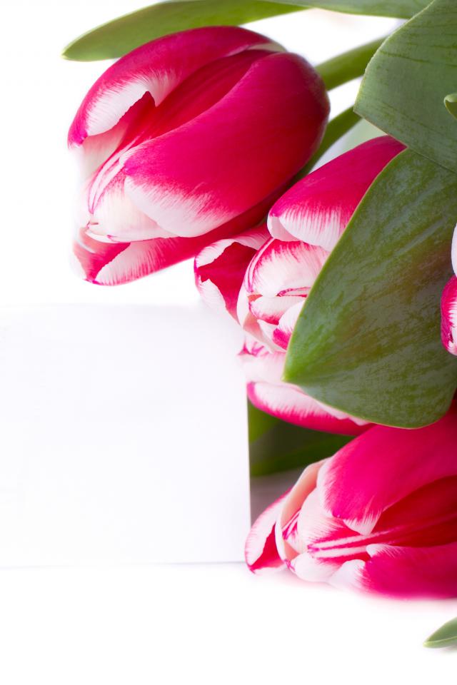 Wallpaper Bouquet of pink tulips in a vase on a white background
