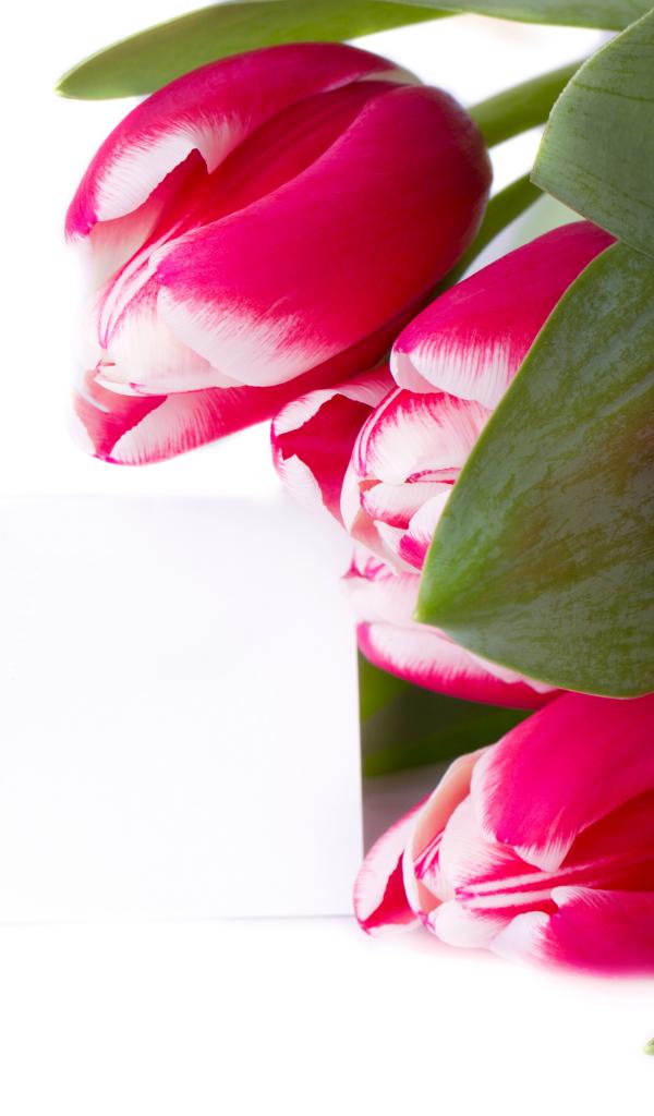 Wallpaper Bouquet of pink tulips in a vase on a white background
