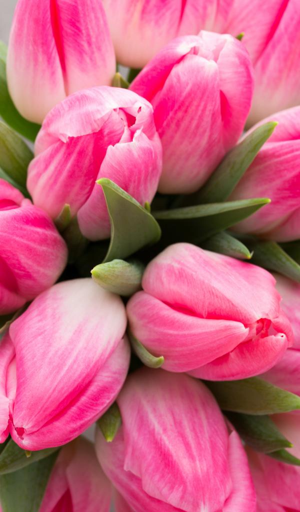 Wallpaper Bouquet of pink tender tulips on a pink surface
