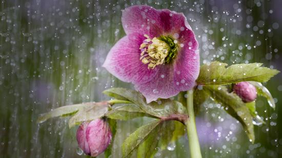 Wallpaper Pink anemone flower in the rain