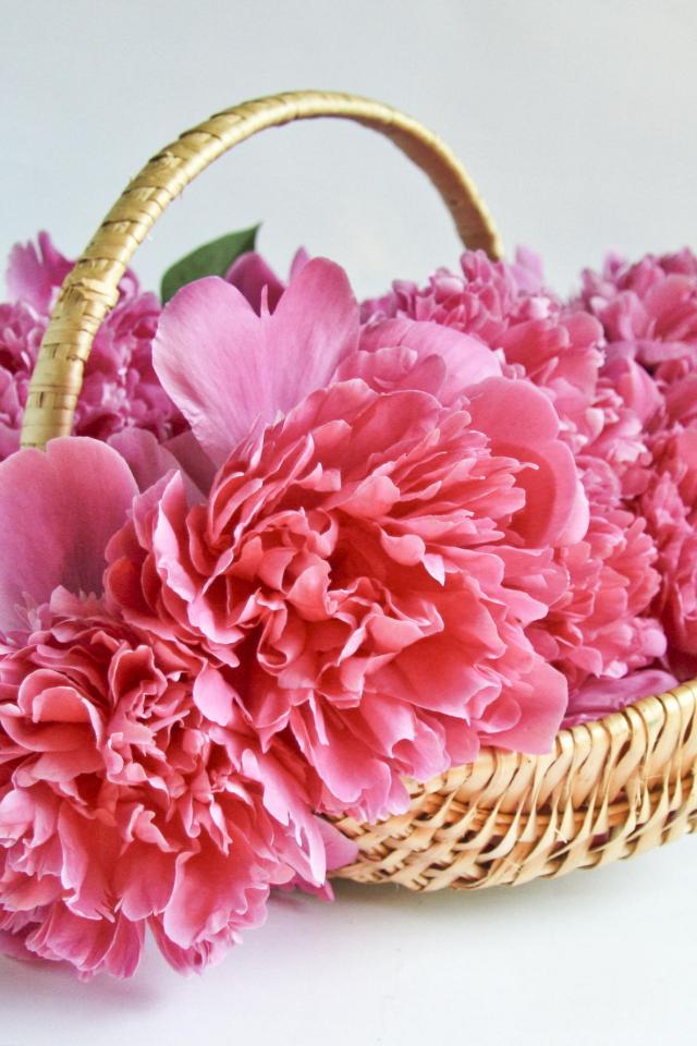Wallpaper Bouquet of pink peonies in a basket