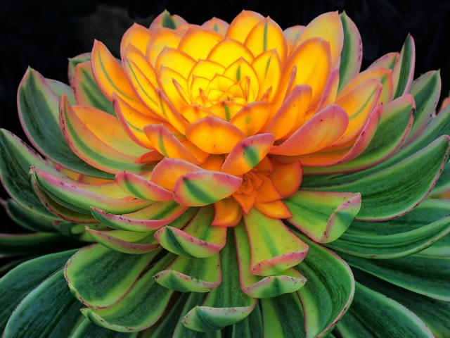 Wallpaper Beautiful multicolored rose flower in drops of dew on a table