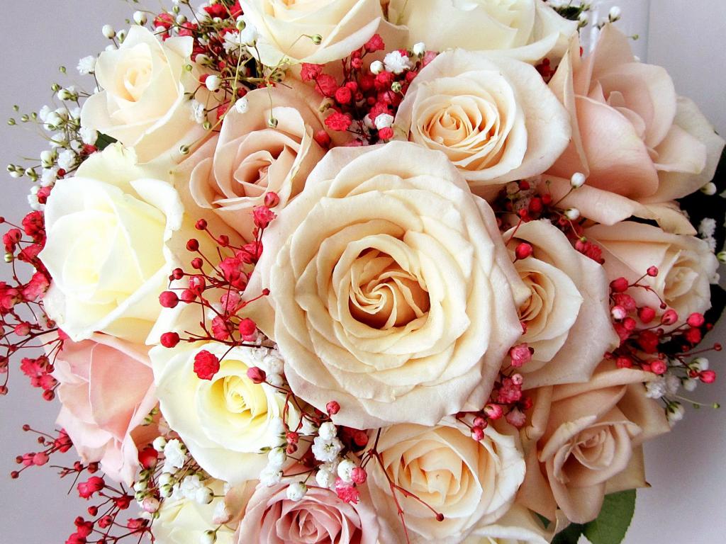 Wallpaper A beautiful bouquet of delicate roses in cream color