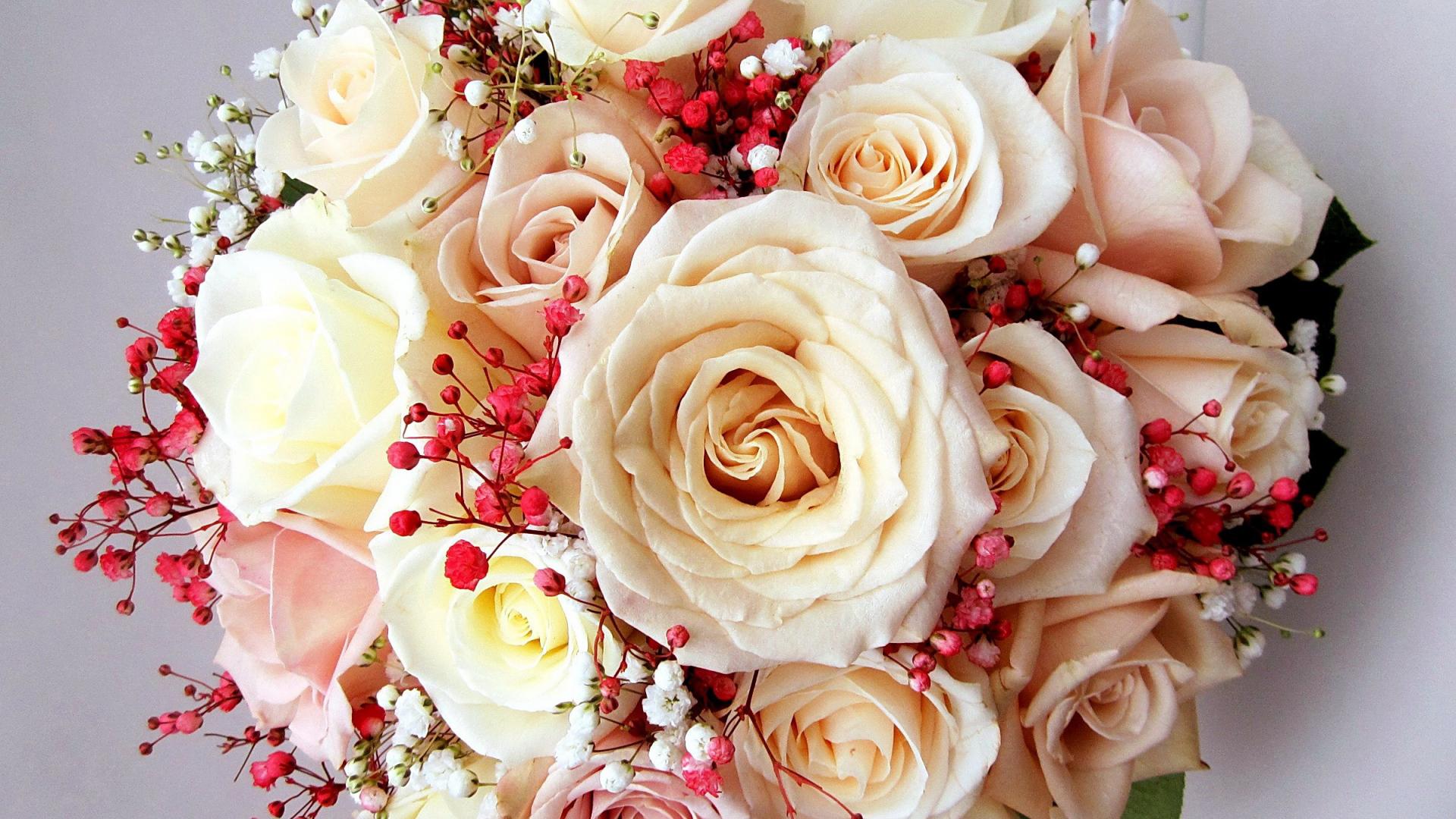Wallpaper A beautiful bouquet of delicate roses in cream color