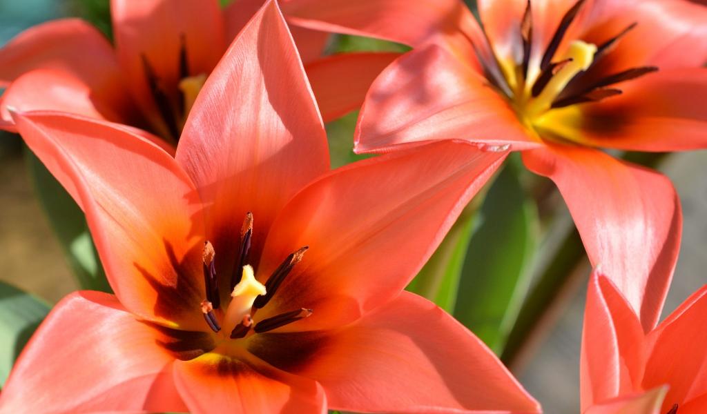 » Wallpaper Red blossoming tulips closeup