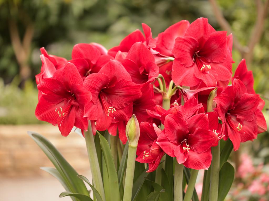 Wallpaper White flowers Amaryllis on a flower bed closeup